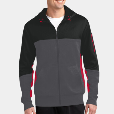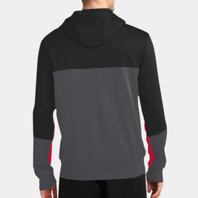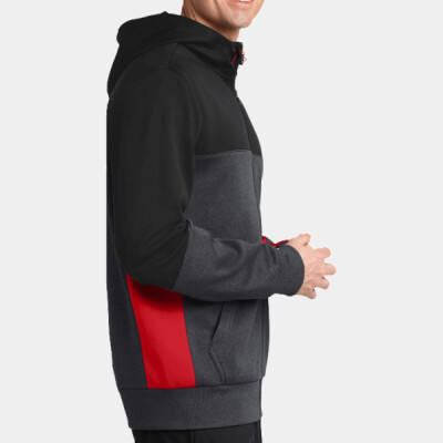 You will be adding a decoration to the Front Split Body Top of the Tech Fleece Colorblock Full Zip Hooded Jacket.