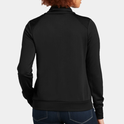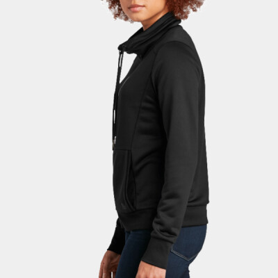 You will be adding a decoration to the Front Split Body Top of the Women's Performance Terry Full Zip Cowl.